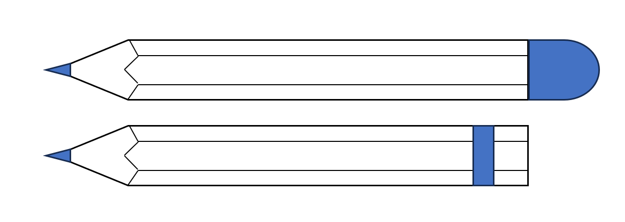 ・お尻部分に消しゴムや装飾、軸部分に硬いラインなど、削れないものが付いているタイプは不適です